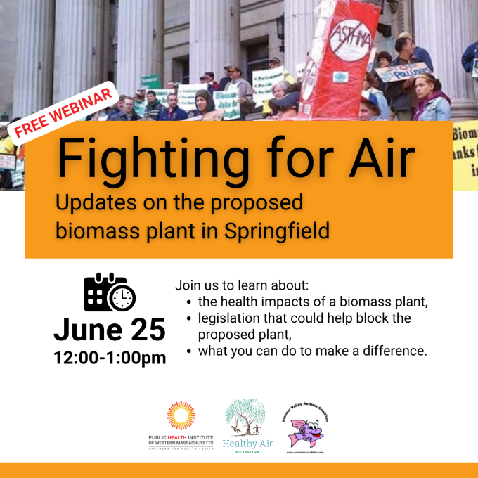 From the Healthy Air Network and the Pioneer Valley Asthma Coalition, we aired the audio recording from “Fighting for Air: Updates on the proposed biomass plant in Springfield” to provide the latest information regarding the health aspects of the biomass plant and proposed legislation related to the issue. <o:p></o:p>Our thanks to all those involved with bringing this program to Valley Eye Radio.